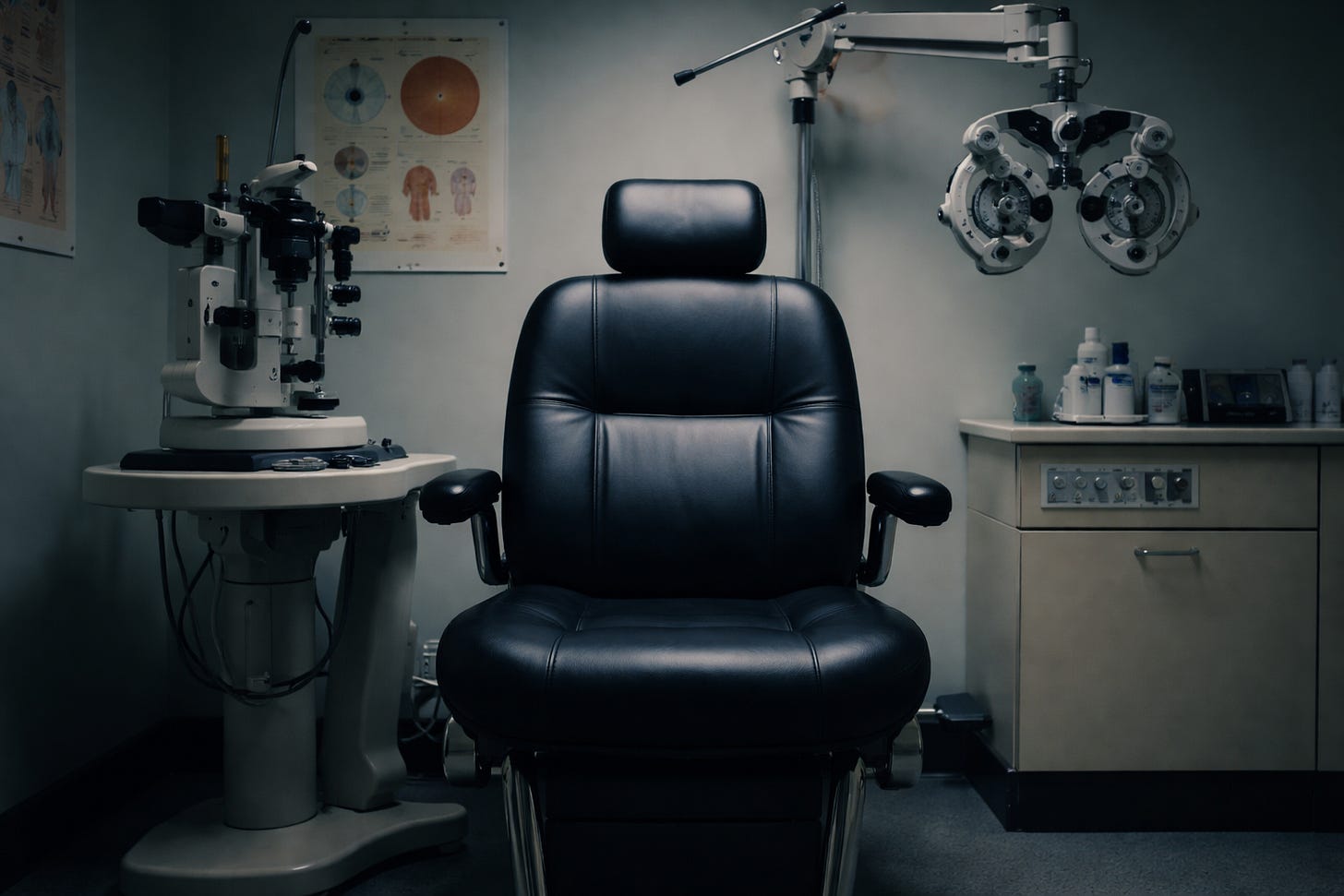 He led me into a dimly lit room filled with instruments and equipment. I sat down in a large chair facing the machines.